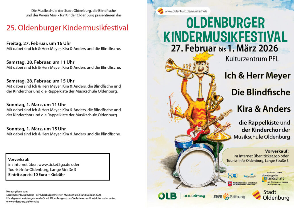 Hier den Flyer zum 25. Oldenburger Kindermusikfestival zur Ansicht und als pdf zum download